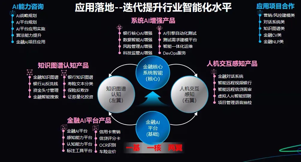 针对金融行业用户对AI越来越强烈的需求,尊龙凯时人生就是博首页信息适时推出“金融AI超脑”,整体技术架构按照“一基一核两翼”整体研发路标构建而成,以金融AI开发平台为基础,以金融核心应用智能化为核心,打造金融行业的感知能力和认知能力,赋能金融产品和行业应用。