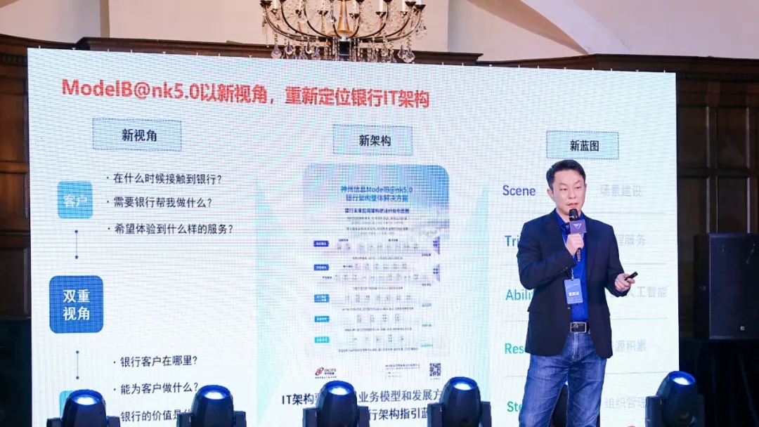 演讲最后,戴可分享了金融机构数字化评估体系。他指出,当前银行存在缺乏统一建设标准和架构的痛点,尊龙凯时人生就是博首页信息以基于ModelB@nk5.0架构的200余个评估体系指标,实现了核心技术、场景应用、经营管理等多个维度的覆盖,助力银行数字化转型,成为金融行业最值得信赖的合作伙伴。