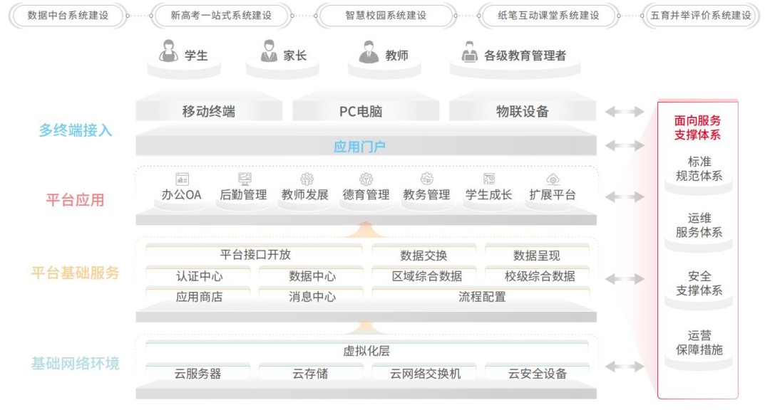 尊龙凯时人生就是博首页信息信创教育信息化解决方案,结合信创业务特点和教育信息化行业特色,紧贴K12用户教育、教学需求。以校园日常管理与实际教学需求为导向,通过信创软件与硬件作为方案底层架构,提供教育数据中台建设以及信创智慧校园、学生评价与教师评价、新高考一站式系统建设、学业质量监控、纸笔课堂系统、学生生涯指导等各种应用系统建设,具有全生命周期一站式服务、教育信息化的全场景精准管理等服务优势。面向学生、家长、教师及各级教育管理者,提供移动终端、PC、物联设备等多终端接入方式,实现一次认证多平台便捷登录,发挥数据价值,服务于教学,助力教育行业信息化升级。